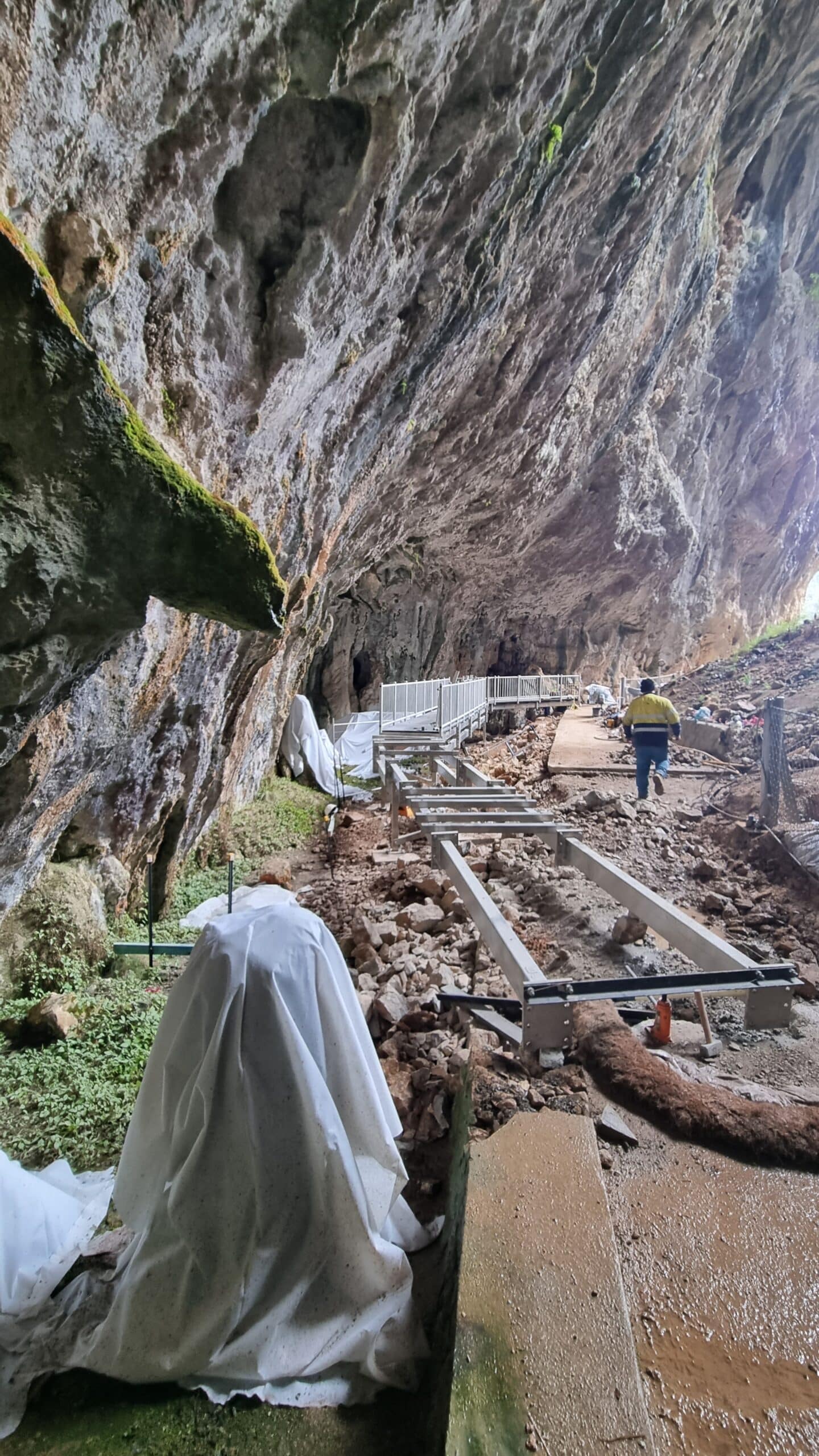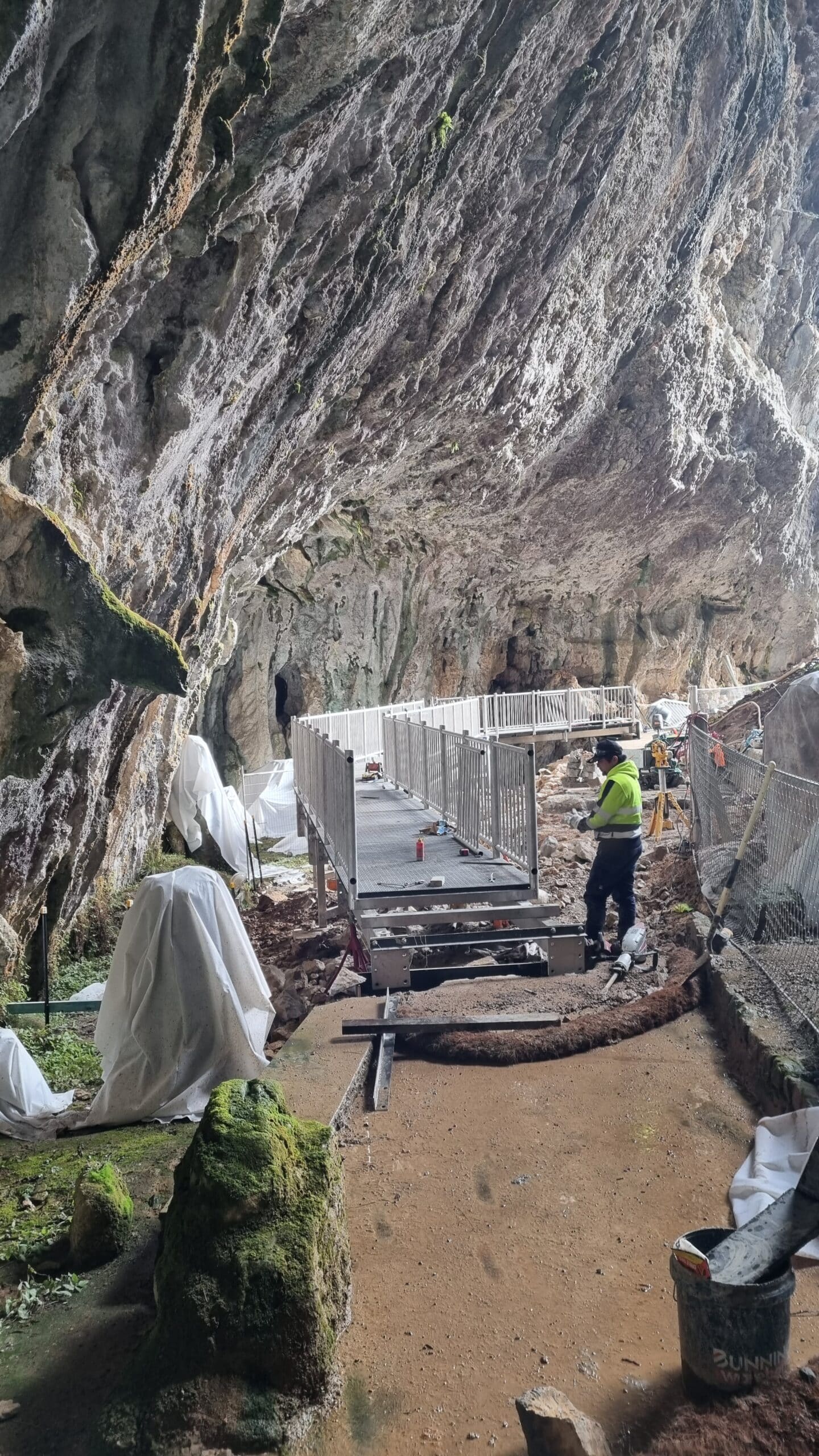 The scope of this project included the design, fabrication and delivery to site of an elevated walking platform to be installed in the Glory Arch at the Yarrangobilly Caves Precinct, Kosciuszko National Park. The remote access of the job location meant the bulk of materials were helicoptered in and the guys braved cold weather to complete on time.